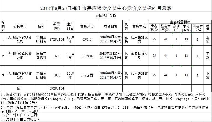 交易時(shí)間和地點(diǎn):2018年8月23日(星期四)上午10時(shí)。廣東省梅州市彬芳大道南161號(hào)梅州市糧食交易中心3樓。