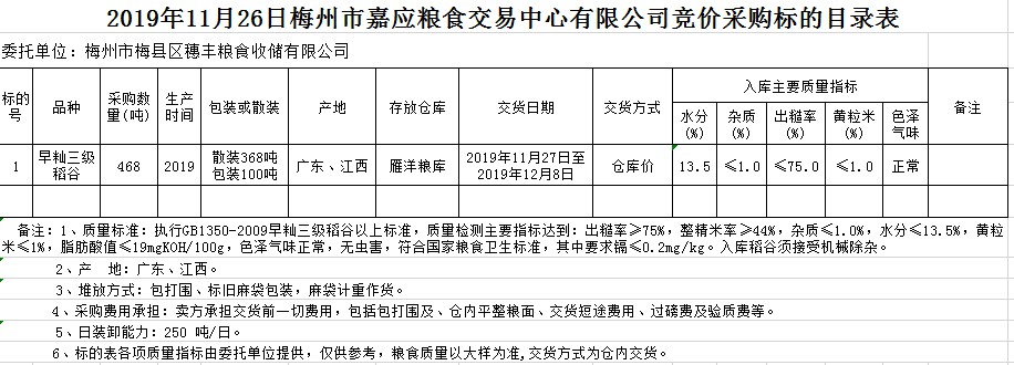 2019年11月26日梅州市梅縣區(qū)穗豐糧食收儲(chǔ)有限公司稻谷采購