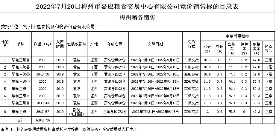2022年7月20日梅州市嘉泰糧食和物資儲(chǔ)備有限公司稻谷銷售