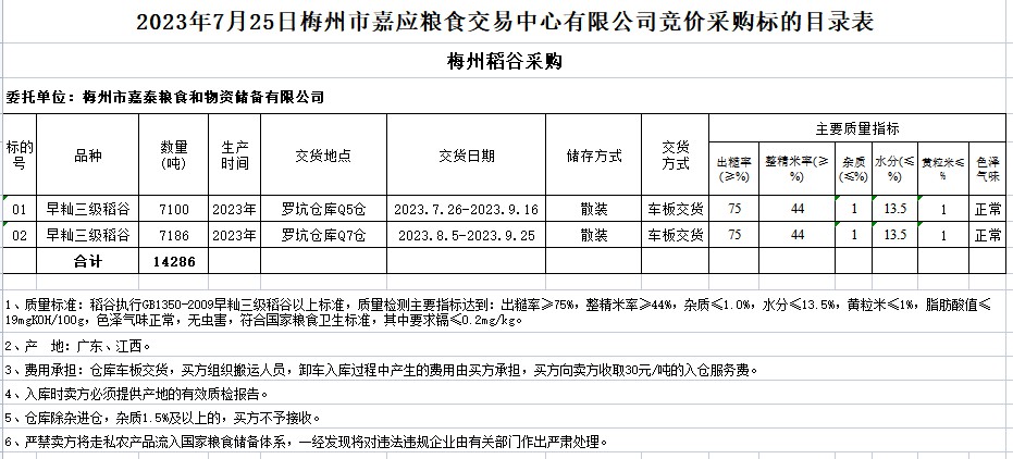 2023年7月25日梅州市嘉泰糧食和物資儲(chǔ)備有限公司稻谷采購(gòu)