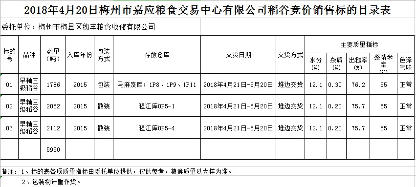 ?交易時間和地點:2018年4月20日(星期五)上午10時。廣東省梅州市彬芳大道南161號梅州市糧食交易中心3樓。