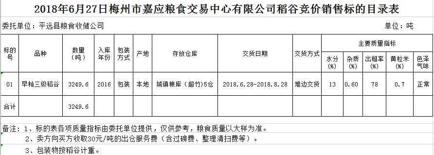 交易時間和地點:2018年6月27日(星期三)上午10時。廣東省梅州市彬芳大道南161號梅州市糧食交易中心3樓。